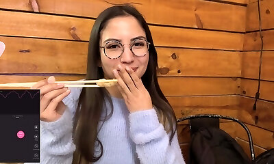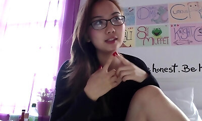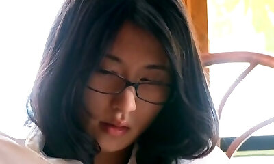 Nerdy babe from the Far East wants her mouth to be filled with jizm