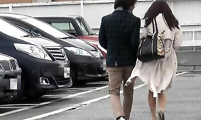 Shy Japanese girl sucks stranger's knob while cuckold is watching