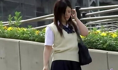 Japanese babe with big bootie gets fondled by older guy